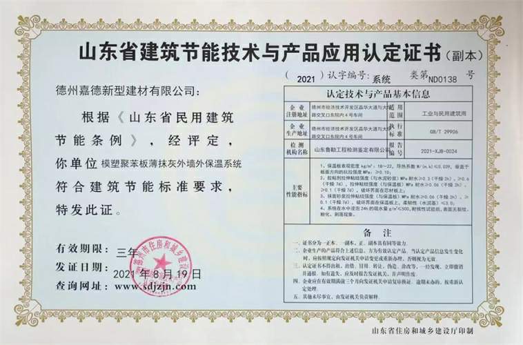 榮獲山東省新型墻材建筑節能應用認定產品證書,中國著名品牌證書